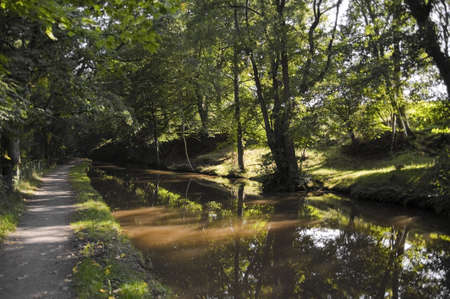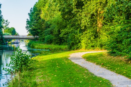 Walkpath at water channels in Surrey green area outside of the town and car traffic
