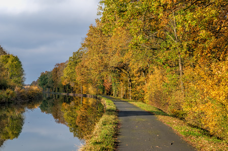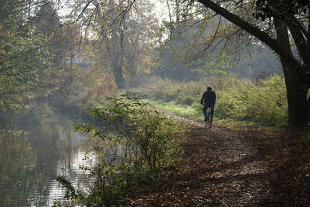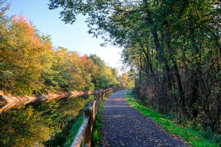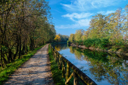 Lombardy, Italy: bicycle track along the Villoresi canal at fall (october)
