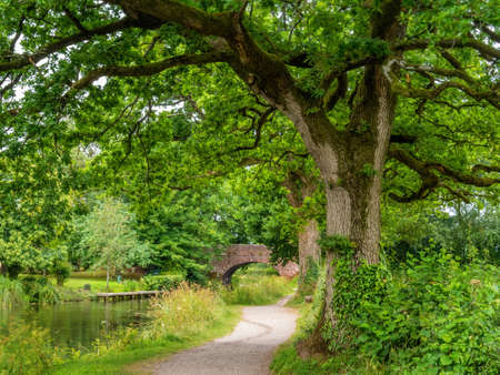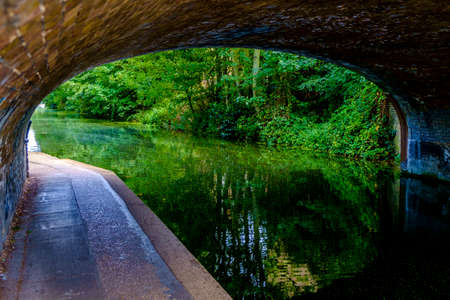 The scenic and beautiful Grand Western Canal, Tiverton, Devon, UK. With bridge.