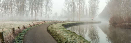 Winding footpath along the small river De Loet in Krimpenerwaard in the Netherlands