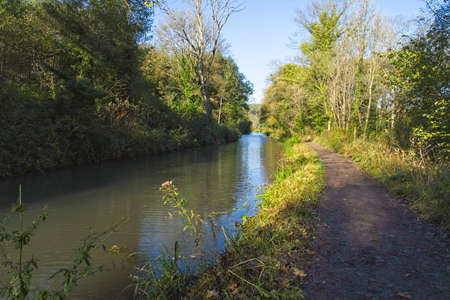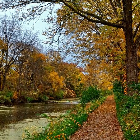 The historic Delaware Canal towpath in Washington Crossing Park in Bucks County Pennsylvania.
