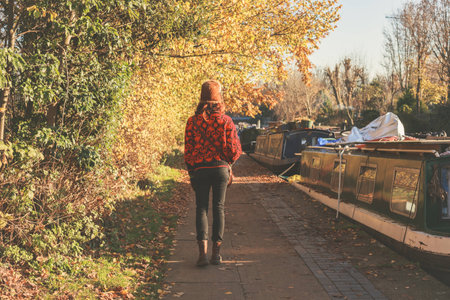 Walking on the towpath beside the murky water of the Cromford canal on a bright autumn morning.