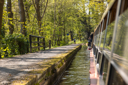 Chalette-sur-Loing, France - May 26, 2024: A solitary fisherman enjoys a peaceful moment by the canal pathway