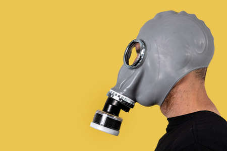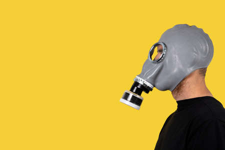 Portrait of a man in a gas mask. Panic during quarantine. Coronavirus pandemia