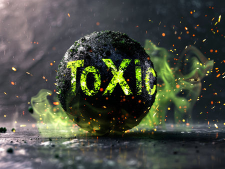 Poison gas symbols hover ominously above a dangerous mixture of chemicals in a laboratory, highlighting the risks of chemical interactions and safety concerns.