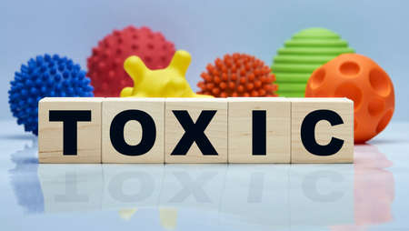 Toxic concept, Cubes wooden blocks form the word Toxic. extensive Toxic Concept applies to both relationships and the chemical industry.
