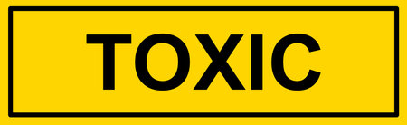 Yellow toxic warning sign with bold black text and black border. Hazardous materials label or banner template for indicating poisonous or harmful substances