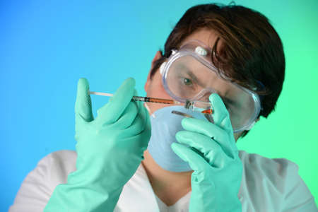 Be careful. Competent medical worker being in the laboratory, doing chemical experiment