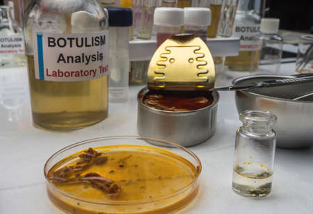 Samples contaminated by Clostridium botulinum toxin that causes botulism in humans, laboratory research, conceptual image