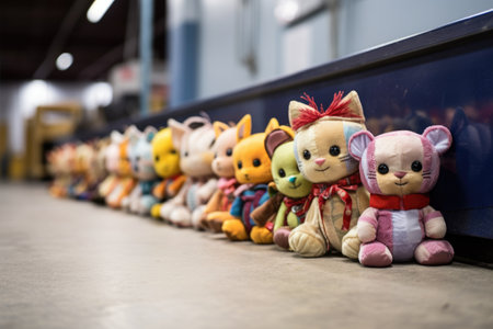 A joyful arrangement of colorful toy figures in a precise lineup, each representing individuality yet united in purpose, ideal for conveying themes of diversity and unity, banner