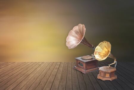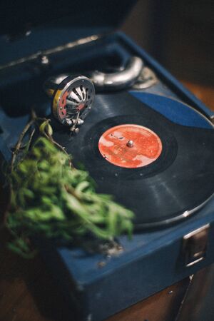 retro old gramophone for playing musi