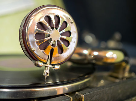 old fashioned gramophone player close up. detail