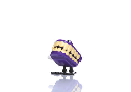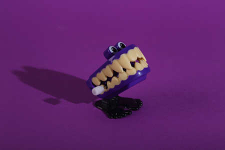 Clockwork halloween toy monster jaw on purple background