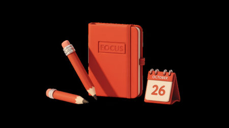 A vibrant orange textured notebook is paired with a bright yellow pencil on a soothing blue background, perfect for artistic endeavors and study sessions.
