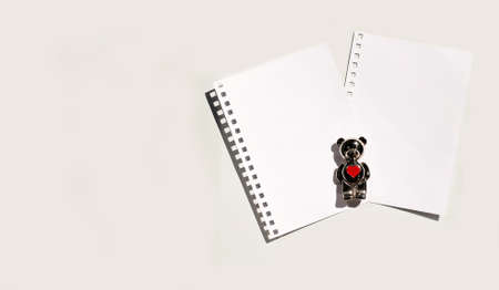 Notepad for notes is open on a blank page. Stationery, note paper.