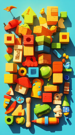 A vibrant display of geometric shapes and blocks designed for children