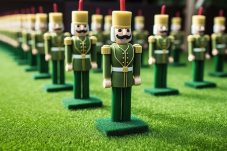 toy soldiers lined up on a green carpet, created with generative ai