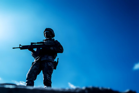 soldiers with weapons in their hands in contrasting colors. defense of the country and its defenders in form of toys, by ai generative