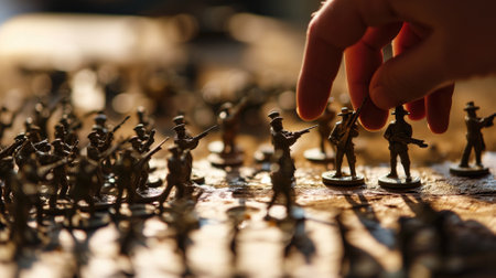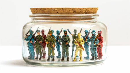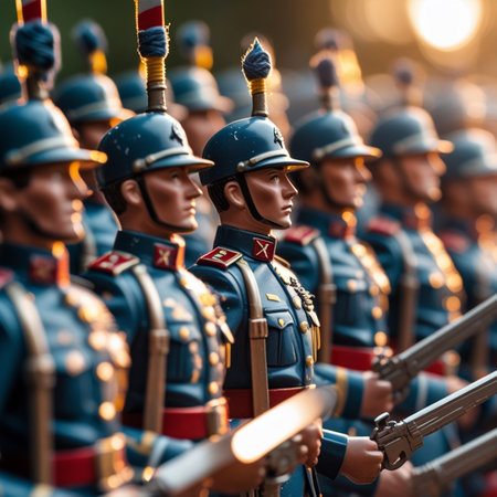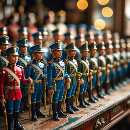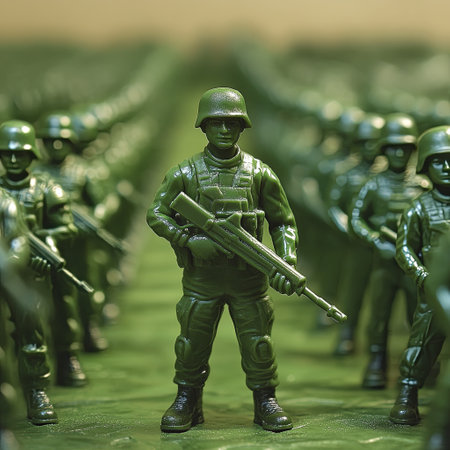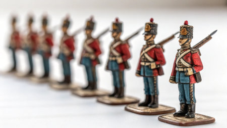 A vivid, close-up of miniature toy soldiers in varying uniforms