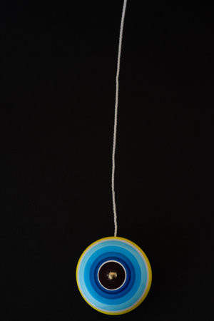 Yo-yo Traditional Mexican wooden handcraft toy, black background