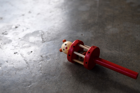 A yo-yo lying on the floor with a rope. Space for text