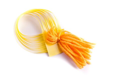 Detail of colored plastic threads for making crafts, background with copy space.