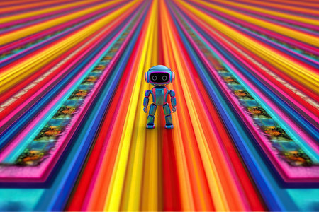 circle rainbow robot on a rainbow road generative ai