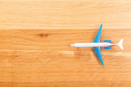 Toy of passenger plane on wooden background