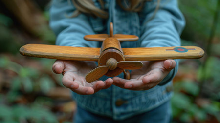 Woman hand holding small airplane toy.