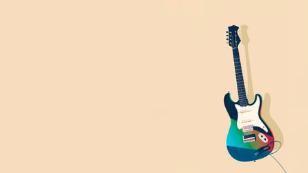 Illustration of electric guitar on beige background with space for your text.