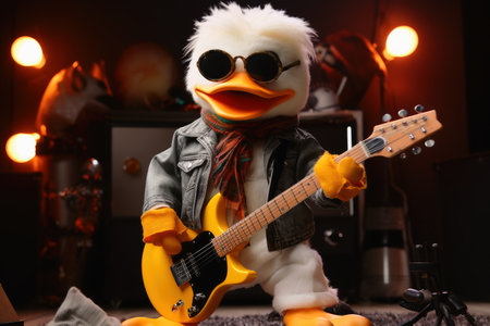 A duck as a rockstar with a guitar