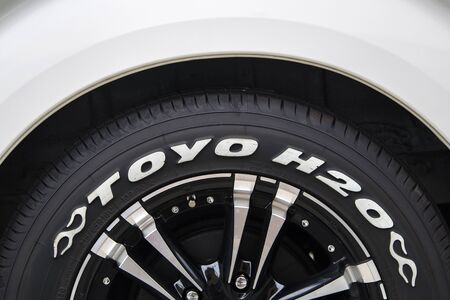 KYOTO, JAPAN - OCTOBER 11, 2016: Detail of Toyo H20 tyre on a car in Kyoto, Japan. Toyo tires are manufactured in Japanese Toyo Tire Corporation, founded at 1945