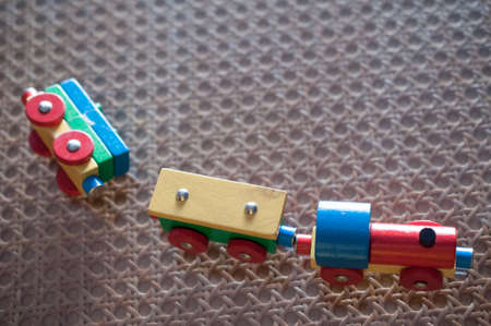 Colorful plastic children toys on the floor.