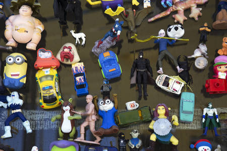 MOSCOW, RUSSIA - JUNE 5, 2019: A wide variety of toys, toy cars.