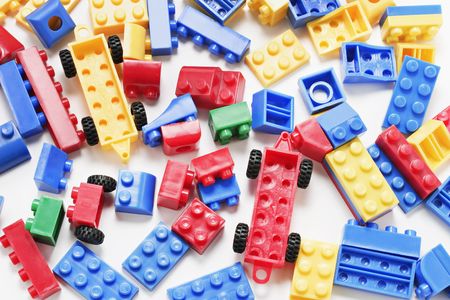 Pattern, colorful childrens constructor, an educational game for preschoolers.toy background made with building blocks from child constructor. Bright plastic building blocks on pink background.