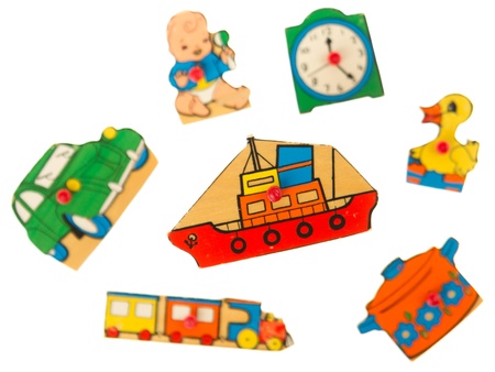 Piece of an antique wooden puzzle for children leaning illustrations (1970, boat)