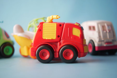 A truck car toy in a blue background