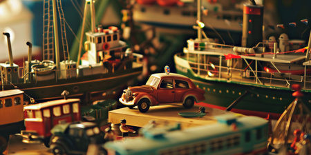 Assorted Toy Boats and Cars on Table