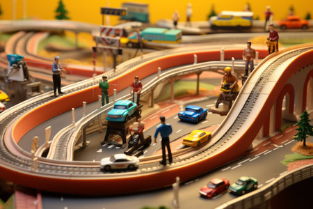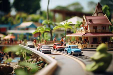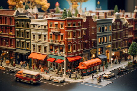 A toy city with a bus and a bus on the street. Generative AI.