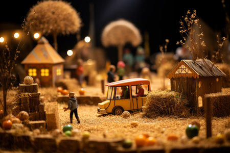 miniature farm with detailed barns, fields, and animals, created with generative ai