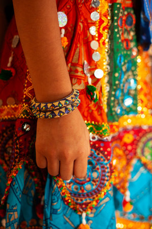 PUSHKAR, INDIA - NOVEMBER 21: An unidentified girls in colorful ethnic attire attends at the Pushkar fair on November 21, 2012 in Pushkar, Rajasthan, India.