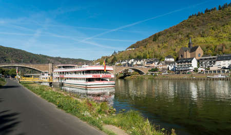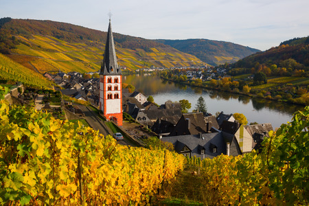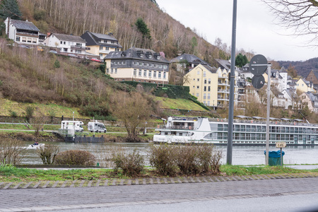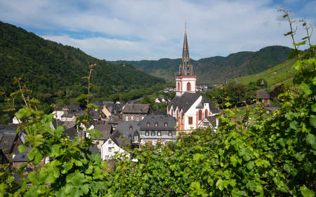 View on small German town located in Mosel river valley, tourists destination in wine regio in Germany