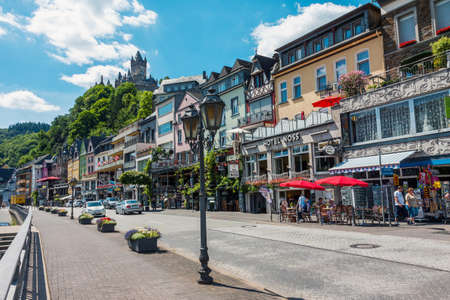 COCHEM, GERMANY - MAY 23 2019: View of the picturesque town Cochem with its famous imperial castle on top of the hill. Cochem is located at Moselle river in Rhineland-Palatinate, Germany.
