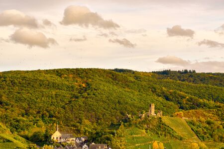 Moselle valley; Beilstein, Germany- August 11 2021: the valley of vineyard