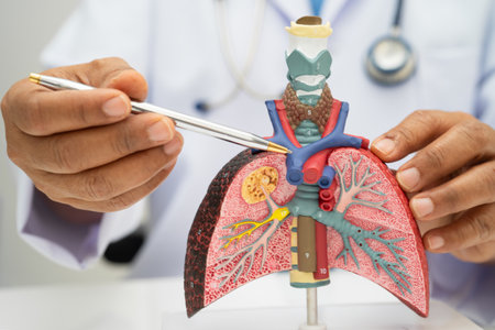Detailed lung model in bright setting. Ideal for medical education, research, or healthcare marketing. A visual aid for understanding respiratory health.