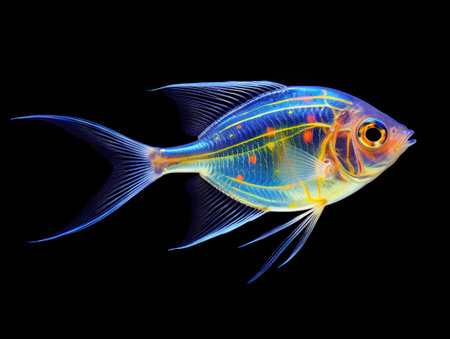 Fish on a black background. Close up. Photography studio.