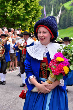 BERCHTESGADEN, GERMANY - JULY 09, 2017: Local festival with parade of fanfare and people dressed in traditonal costumes. Every village from the neighbourhoud has his own costumes.