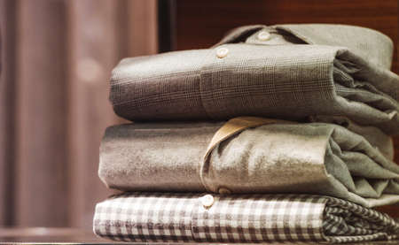 closeup of shirt set in a men fashion store showroom