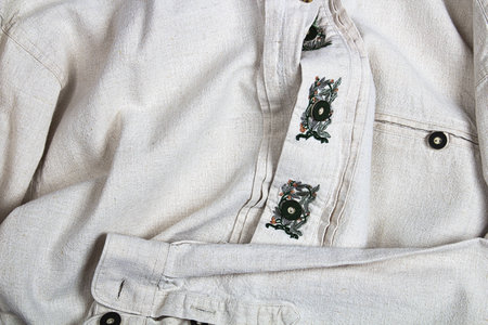 Close up of men's linen shirt. Soft focus.