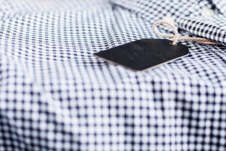 Cardboard tag with space for text on white shirt, closeup